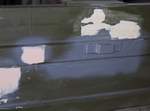 Aus diesem Grund musste ich also erst mal wieder "Masse" bilden. Dazu verwendete ich Glasfasermatten, die ich mir zurechtschnitt und danach mit Kunstharz einstrich. Widererwarten ging das ganz einfach und es wurde bombenfest. Weiter ging es dann mit dem Ausspachteln der Stellen mit Spachtelmasse. Das ganze ließ ich dann über Nacht aushärten und am nächsten Tag machte ich mich dann daran, die gespachtelten Stellen abzuschleifen. Im Anschluß lackierte ich alle Stellen mit Rostschutz und ließ dies ebenfalls über Nacht trocknen.