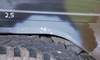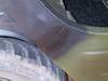 Mit der aufmontierten Topfbürste ging das ganze dann eigentlich sehr einfach und schnell. Leider stellt sich heraus, daß am Kotflügel vorne rechts der Rost schon soweit fortgeschritten war, daß man nach dem Schleifen mit dem Finger durch das Loch langen konnte :-((