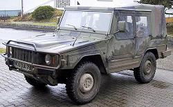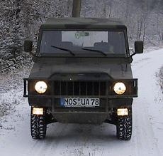 Kaufen wollte ich ihn mir meinen ersten Iltis eigentlich schon 1994, aber da hatte ich einfach keine Zeit für so ein Späßchen. Wobei man eindeutig feststellen muß, daß es sich nicht einfach nur um ein Spaß-Auto handelt, sondern so richtig Arbeit damit verbunden ist (und leider auch Geld), aber das muß einem von vornherein schon klar sein. Auf jeden Fall bin ich im Mai -nachdem ich ein paar Anzeigen und Inetrnetseiten durchwühlt hatte- in den Hunsrück gefahren und habe mich dort sofort in einen verguckt, der in einem technisch einwandfreien Zustand war. Ich ließ noch einen Kat einbauen und den abklappbaren Frontschutzbügel montieren. Farblich entschied ich mich für die Lackierung nach Tarnmuster der Bundeswehr, da ich trotz der Anbaumaßnahme nicht auf sonstige Originalität verzichten wollte.